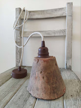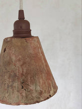 Ce luminaire est conçu à partir d’un ancien pot de gemme, autrefois utilisé dans les Landes pour récolter la résine du pin.